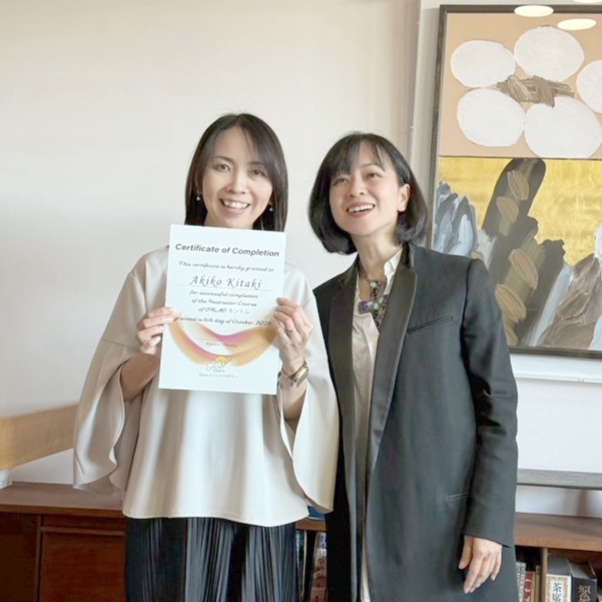 OAKOに出会う前、私は綺麗な顔をkeepできるのは、お金のある人と、ラッキーなDNAを持っている人くらいだと思っていて、自分の顔はもう諦めかけていました。ところが、素敵に変わった友人の笑顔を見て、自分の努力次第で顔が変えられると知り、それなら私にもできるかもしれないと思い、早速ベーシックレッスンとRED UPを申し込みました。とても楽しかったけれど、もっと知りたい!知って本当に悩みを減らしたいと思うようになりインストラクター養成講座を受講させていただきました。受けてみると、それぞれのポーズが、なぜそうするのか理解でき、知れば知る程奥が深く難しいけれどとても勉強になりました。鏡を見る度ため息ばかりの日々でしたが、最近はため息が減り、少しは進歩したかな?とか、諦めるな!と励ますようになりました。こうしていると、なんだか運も良くなる様な気がします。最初は自分の顔のことしか考えずに始めましたが、いつか、私の様に諦めかけている人の悩みを少しでも減らせるお手伝いができる様になれたらいいなと思い始めています。試験前に励まし、応援してくださった先輩インストラクターの方々にはとても感謝しています。そして何よりもの凄い研究努力を重ね、この様なメソッドを作ってくれた希先生の存在に感謝です!有難うございました。